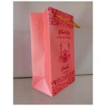 Pink with Maroon gift bag– Pink with maroon gift bag is one of our beautiful designs.These beautiful personalized gift bags are crafted out of very fine quality shimmery Pink metallic card stock,with golden rope used as handles and with Gold ink design.Text and design printed on the bag is totally customizable.