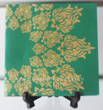 Apple Green with Gold with an embossed with a white envelope with a watermark.