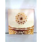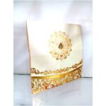 Attractive white with gold wedding invitation is one of our elegant designs. This invitation card is made out of white textured Metallic board with matching mailing envelope. Card front has a rich gold foiling and a laser cut Ganesh logo (Please note, this logo can be changed to any symbol or couple initial as per your preference). Please choose one of the colours from our colour pallet (please check the image) for envelopes. 120gsm shimmer paper. The card has two inserts with coordinated printed designs.