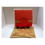 Beautiful red wedding invitation is one of our creative designs. This invitation card is made out of red metallic paperboard with matching mailing envelope. Card has a watermark design, rich gold foiled design and ganesh laser cut logo (Please note, this logo can be changed to any symbol or couple initial as per your preference). Please choose one of the colours from our colour pallet (please check the image) for envelopes. 120gsm shimmer paper. The card has two inserts with coordinated printed designs.
