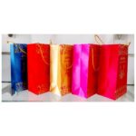 Beautiful satin bags is one of our beautiful designs. These beautiful personalized gift bags are crafted out of very fine quality simmery satin metallic stock, with golden rope used as handles.   Text and design printed on the bag is totally customizable.