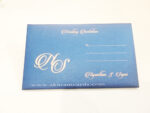 A Grand Blue card with Logo printed. Door opening style, couple names or initials can be printed on the card front stripe.