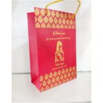 Both Side Print Red bag  – Both Side Print Red bag is one of our beautiful design. These beautiful personalized gift bags are crafted out of very fine quality metallic card stock, with gold rope used as handles. Text and design printed on the bag is totally customizable. The printing on this bag is gold ink. Hence the price reflects the luxury finishing.