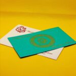 Circle flower design green wedding invitation is one of our elegant design. This invitation card is made out of green textured paperboard with matching mailing envelope. Card has a green watermark design, Circle flower design and 3D Ganesh logo Gold ink screen print. (Please note, this logo can be changed to any symbol or couple initial as per your preference). Please choose one of the colours from our colour pallet (please check the image) for envelopes. 120gsm shimmer paper.