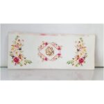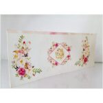 Digital white long wedding invitation. This invitation card is made out of white textured paperboard with matching mailing envelope. Card front has a floral design printe and 3D design Ganash logo (Please note, this logo can be changed to any symbol or couple initial as per your preference). Please choose one of the colour from our colours pallet (please check the image) for envelopes. The card has two inserts with coordinated printed designs.