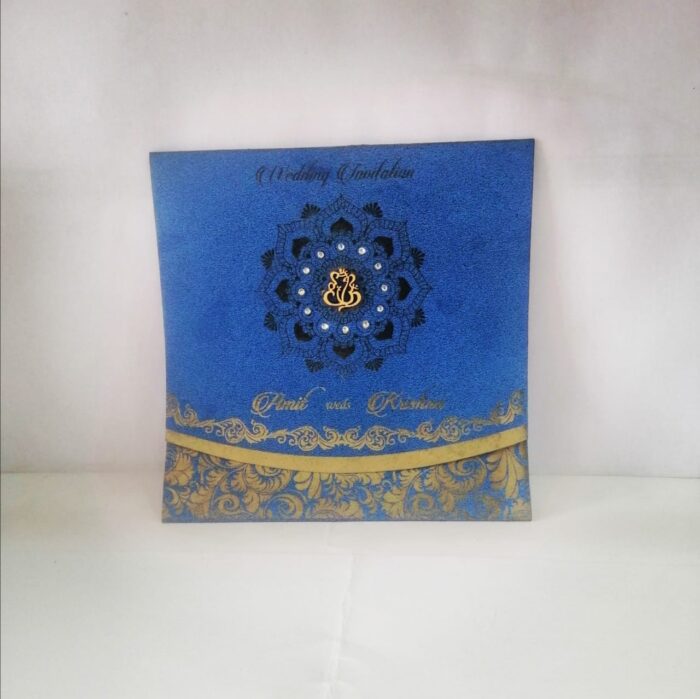 Home Invitations Hindu Cards Floral Blue Gold wedding invitation
