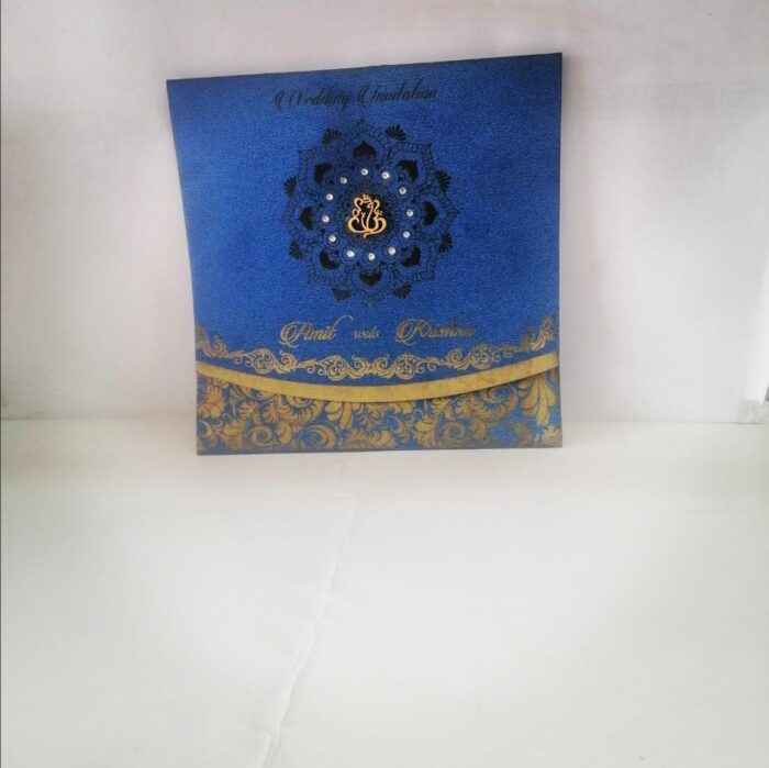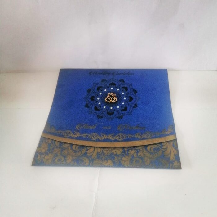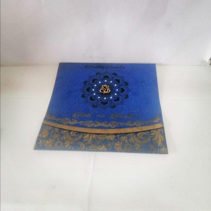 This is a beautiful Royal blue metallic card finish card with swril designed foiled in bright gold. Ideal for your function which suits with your theme and taste. Card comes with two inserts and envelope. Additional inserts can be ordered separately.
