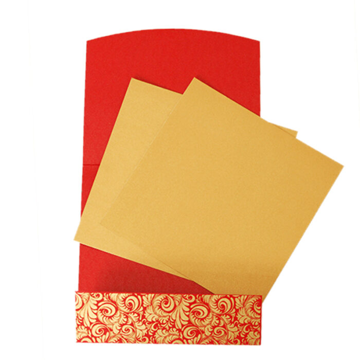 This is a beautiful red metallic card finish card with swril designed foiled in bright gold. Ideal for your function which suits with your theme and taste. Card comes with two inserts and envelope. Additional inserts can be ordered separately.