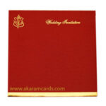 Attractive red wedding card wedding invitation is one of our elegant designs. This invitation card is made out of red textured paperboard with matching mailing envelope. Card front has a rich gold foil printing and a foiled 3D ganesh logo (Please note, this logo can be changed to any symbol or couple initial as per your preference). The card has two inserts with coordinated printed designs. Please choose one of the colour from our colours pallet (please check the image) for envelopes. 120gsm shimmer paper.
