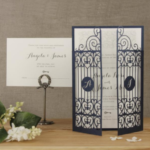 Gate laser cut wedding invitation cards.