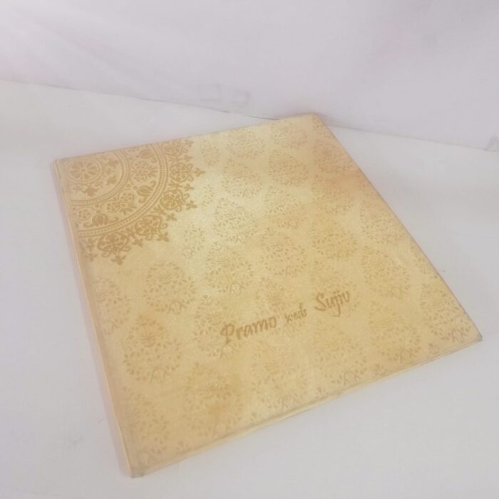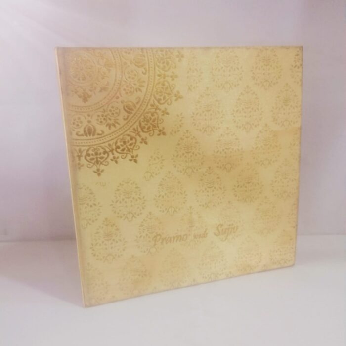 Gold Foil wedding invitation Card is one of our elegant designs. This invitation card is made out of Cream textured paperboard with matching mailing envelope.Card front has a rich Gold foil , water marks design(Please note, this logo can be changed to any symbol or couple initial as per your preference).Please choose one of the colour from our colours pallet (please check the image)for envelopes. 120gsm shimmer paper.This card comes with two inserts with coordinated printed designs.