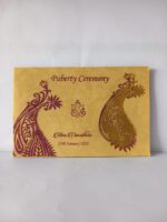 Feather’s Design invitation is one of our elegant designs.This invitation card is made out of pink textured paperboard with matching mailing envelope.(Please note, this logo can be changed to any symbol or couple initial as per your preference). Please choose one of the colour from our colours pallet (please check the image) for envelopes.