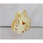 Peacock laser cut cake box is one of the cutest  that we produce.This cake box is made out of cream textured paperboard.This is a peacock  laser cut design cake box.Cake box has a gold foil out lines.