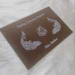 Peacock design wedding invitation is one of our elegant designs. This invitation card is made out of Brown textured paperboard with matching mailing envelope. Card front has a rich White peacock design printed in ink. (Please note, this logo can be changed to any symbol or couple initial as per your preference). Please choose one of the colour from our colours pallet (please check the image) for envelopes. 120gsm shimmer paper. The card has two inserts with coordinated printed designs.