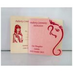 Pink with Maroon lord Ganesh face on one side with cream envelope and with two inserts.