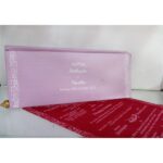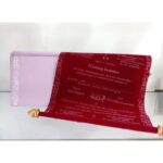Scroll Gold wedding invitationis one of our elegant designs. This invitation card is made out of Gold textured paperboard. Card front has a rich Purple ink Print.(Please note,this logo can be changed to any symbol or couple initial as per your preference).Please choose one of the colour from our colours pallet(please check the image)for envelopes.120gsm shimmer paper.The card has two inserts with coordinated printed designs.