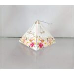 Pyramid shape Digital print cake box is one of the cutest that we product.This cake box is made out of White textured paperboard.cake box front has a Gold ink design screen printing.
