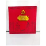 Red satin wedding invitation is one of our elegant designs. This invitation card is made out of Red textured paperboard & Satin material with matching cream mailing envelope Card has damask design printed on satin with laser cut Ganesh pasted in the middle. Cover wave design printed with logo(Please note, this logo can be changed to any symbol or couple initial as per your preference).The card has two inserts with coordinated printed designs.