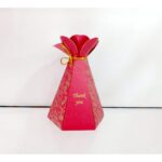 Rich wedding cake box is one of the cutest  that we produce. This cake box is made out of Red textured paperboard.Cake box front has a gold ink mango paisley patterns on alternate faces.