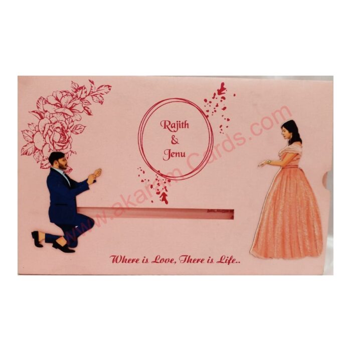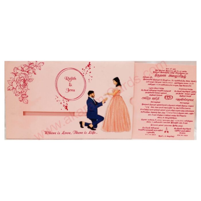 Tik Tok wedding Card with  a pocket type with pink board envelope.Its suitable for all occasion.