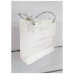 Personalized Gift Bags is one of our beautiful designs.These beautiful personalized gift bags are crafted out of very fine Mat White card board,with Red ribbon used as handles and with Red ink designs.Text and designs printed on the bag is totally customizable.Hence the price reflects the luxury finishing.