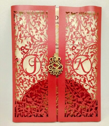 New Style maroon Framed Laser Cut Wedding Invitation
