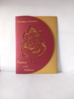Laser cut out Ganesh invitation is one of our elegant designs. This invitation card is made out of Maroon shimmer paper with matching mailing envelope.Card front has a laser cut out Ganesh,with a matching gold shimmer third page to elevate the laser cut out Ganesh(Please note,this Ganesh can be changed to any symbol or couple initial as per your preference).