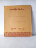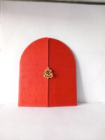 Temple door design wedding invitation is one of our elegant designs. This invitation card is made out of red textured paperboard with matching red mailing envelope. Card has a damask design water mark and laser cut Ganesh logo(Please note, this logo can be changed to any symbol or couple initial as per your preference).The card has two inserts with coordinated printed designs. Please choose one of the colour from our colours pallet (please check the image)for envelopes.120gsm shimmer paper.