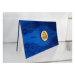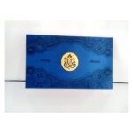 Blue Satin print Ganesh Invitation is a rich satin material booklet invitation with laser cut Ganesh on the center of the card. This invitation card is made out of Blue Satin paperboard with matching mailing envelope. Card has a Black ink design and Laser cut Ganesh on the center of the card . The card has Two inserts with coordinated printed designs.