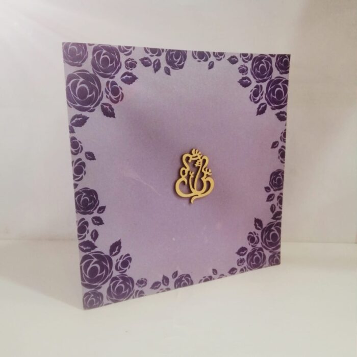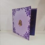Rose embossed wedding invitation is one of our elegant designs.This invitation card is made out of purple textured paperboard with matching mailing envelope.Card front has a rose embossed design, and couple initial laser cut logo(Please note, this logo can be changed to any symbol or couple initial as per your preference).Please choose one of the colour from our colours pallet(please check the image)for envelopes. 120gsm shimmer paper.The card has two inserts with coordinated printed designs.