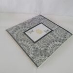 Elegant Chakra Wedding Invitation is one of our elegant designs. This invitation card is made out of white metallic texture paperboard with matching paper mailing envelope. Card has Gold screen print, Couple names in screen print. Ganesh logo in rich gold foil (Please note, this logo can be changed to any symbol or couple initial as per your preference). Please choose one of the colour from our colours pallet (please check the image) for envelopes. 120 gsm shimmer paper. The card has two inserts with coordinated printed design.