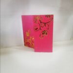 Door open design wedding invitation is one of our elegant designs.This invitation card is made out of Pink textured paperboard with matching Pink mailing envelope.Card has a new design foiling(Please note, this logo can be changed to any symbol or couple initial as per your preference).The card has two inserts with coordinated printed designs.Please choose one of the colour from our colours pallet (please check the image)for envelopes.120gsm shimmer paper.