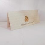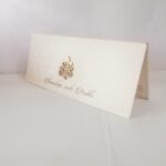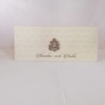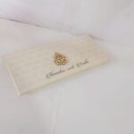 New model invitation card white is one of our elegant designs. This invitation card is made out of White textured paperboard with matching mailing envelope. Card front has a water mark and ink print (Please note, this logo can be changed to any symbol or couple initial as per your preference). Please choose one of the colour from our colours pallet (please check the image) for envelopes. 120gsm shimmer paper. The card has two inserts with coordinated printed designs.