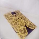Golden-laser is one of the most famous cards among people. It is a laser-cut type with a designed band in the middle.It is made by using a Metallic board.The attractive gold color suits a traditional auspicious start of your function.