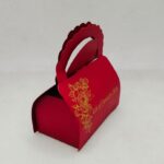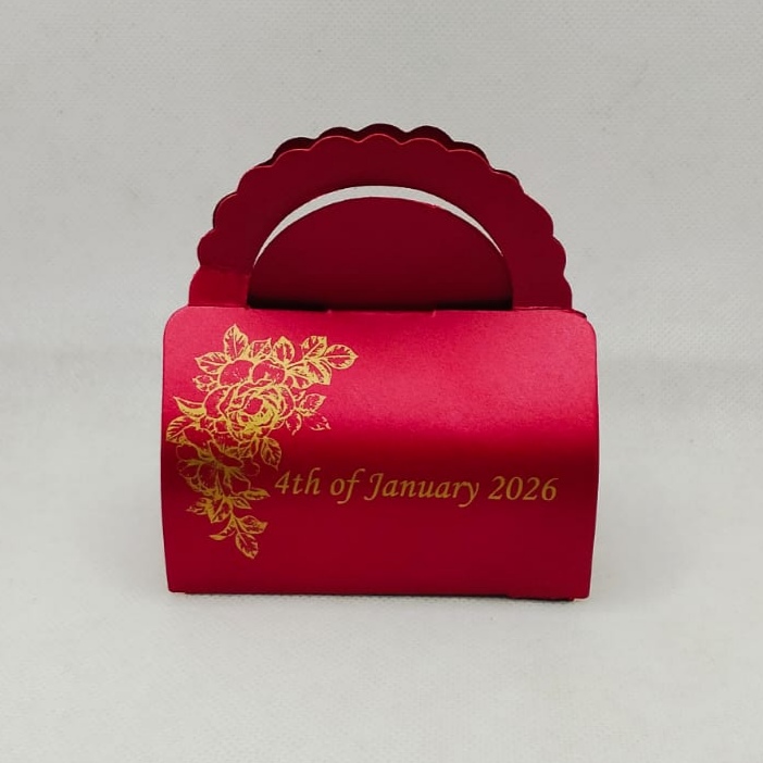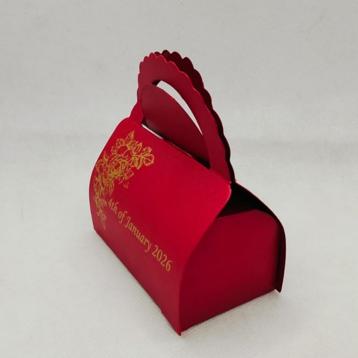 Red colour cake box is one of the beautiful design. This cake box is made out of red textured board. Cake box front has a gold ink screen printed.