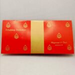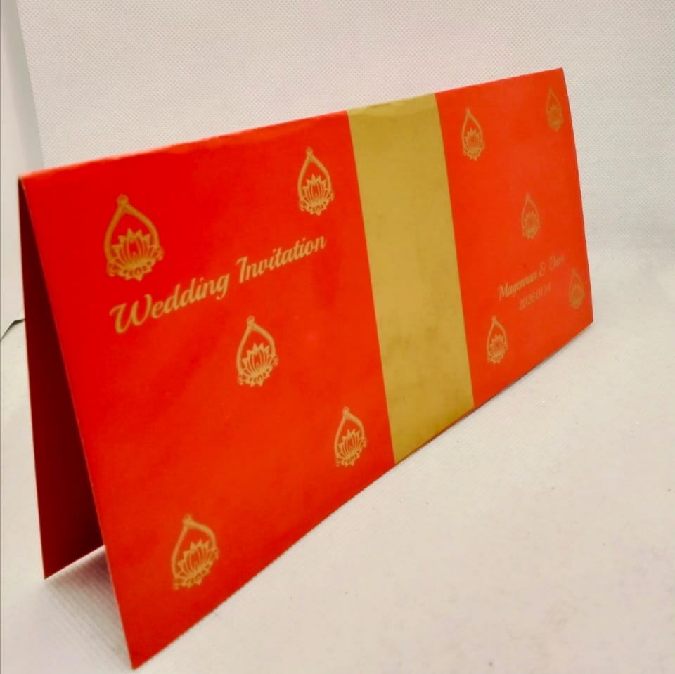 Red colour wedding invitation is one of our elegant design. This invitation card is made out of red textured metallic board with matching paper envelope. Card has tw0 side rich gold design. The insert on the inside of the card is printed.