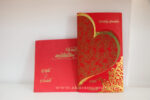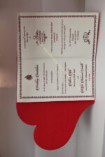 Unique heart shape home coming invitation is one of our elegant designs. This invitation card is made out of red textured metallic board with matching mailing envelope. Card front has a rich Gold foiling. Please choose one of the colour from our colours pallet (please check the image) for envelopes.120gsm shimmer paper. The card has two inserts with coordinated printed designs.